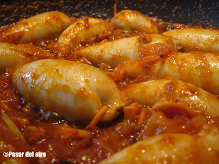 - Como los chipirones eran un poco pequeños y las longanizas grandes, me ha sobrado algo de relleno. Calibrad cuanto relleno pueden admitir vuestros chipirones. De todas formas he aprovechado el relleno para unos canelones.