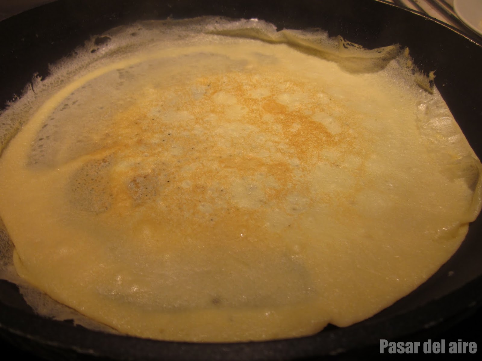 | Recien puesta la masa en la sartén |