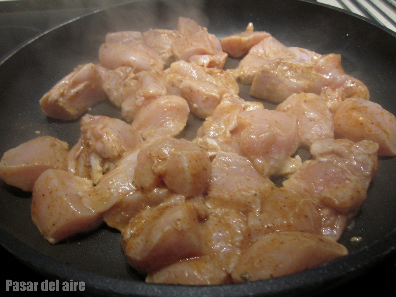 - Cortar las pechugas en tacos de como 2-3 cm.
