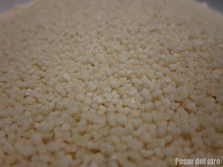 Nos gusta mucho la sémola del cuscús. Pero para dos, hacer el caldo y todos los complementos, resulta mucha comida. Así que lo hacemos a medias, es decir, sólo parte del acompañamiento.