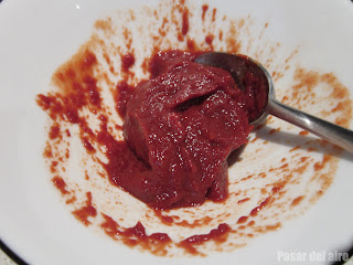 - En un bolecillo, mezclar la pasta de harissa con el tomate concentrado.