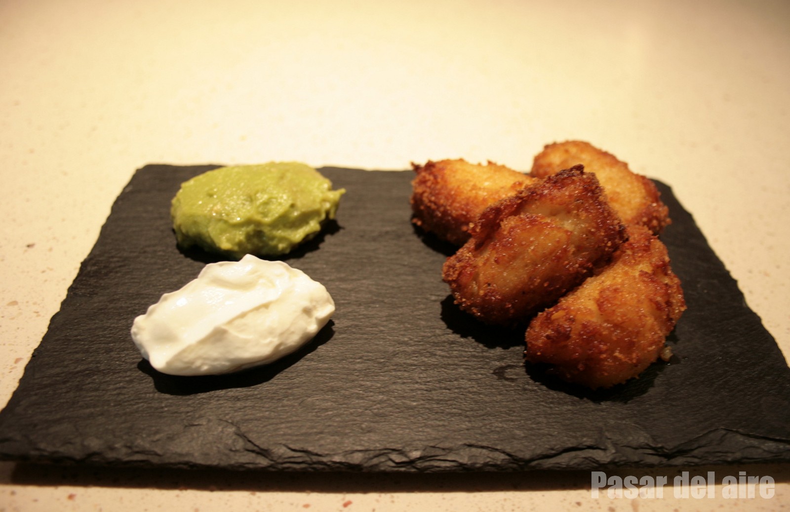 Para variar, las hemos presentado con guacamole y nata agria.