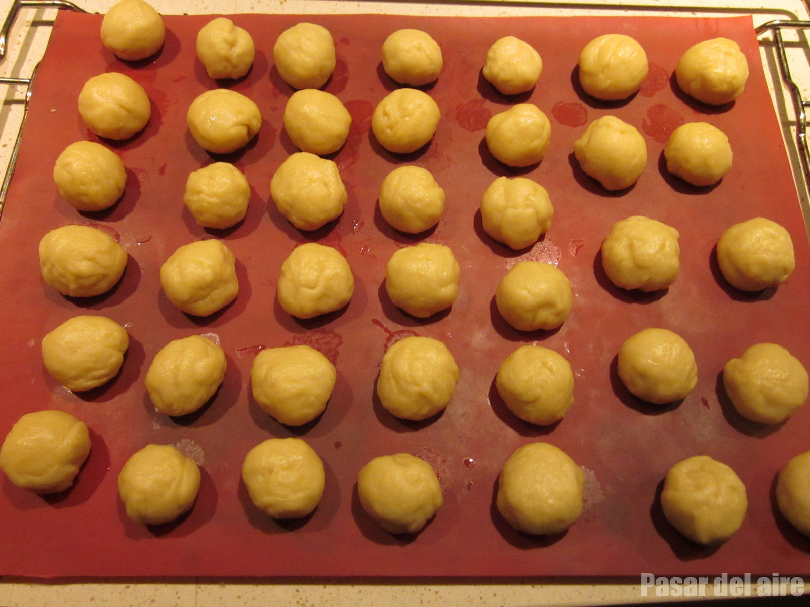 - Cuando la masa haya crecido, hacer bolitas con las manos untadas en un poco de aceite.