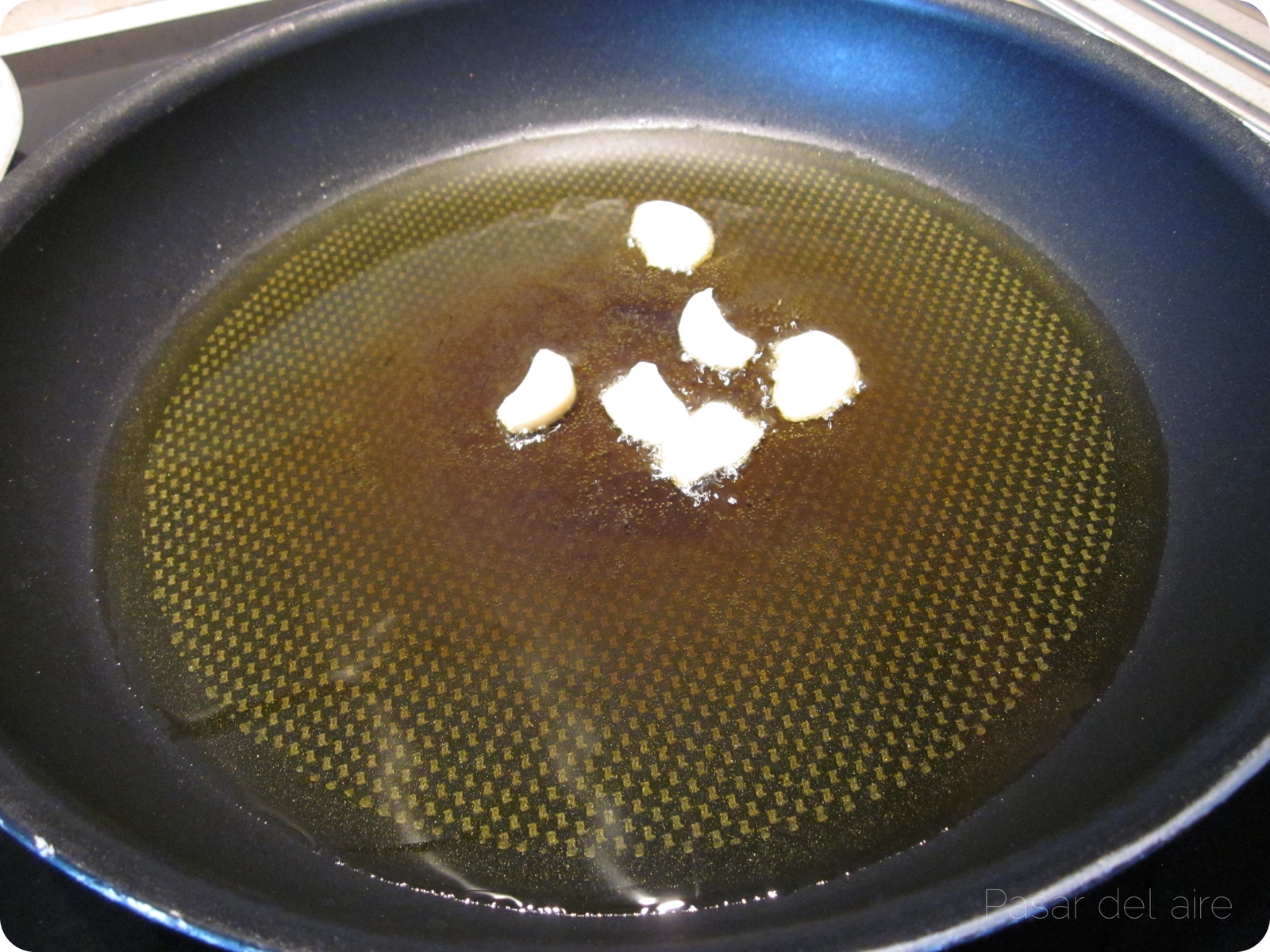 | Inicio de la fritura de los ajos |
