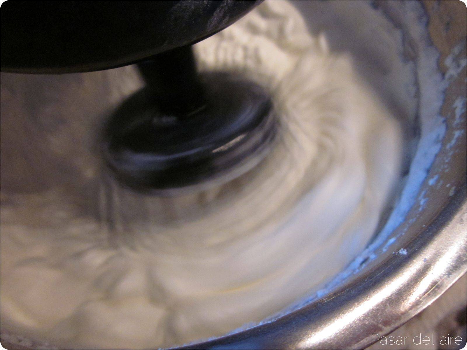 - Montar la nata, incorporar el azúcar glass poco a poco y seguir montando.