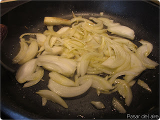 - Poner a sofreír la cebolla y el ajo. Esperar a que la cebolla transparente.