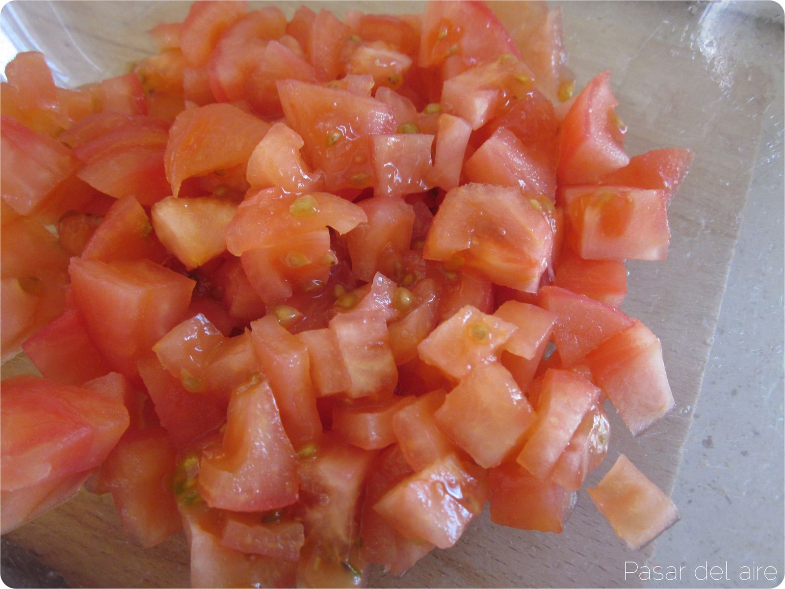- Partir groseramente el tomate y ponerlo en el vaso de la batidora.