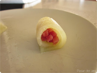 - Llenar con el jamón serrano cortado en taquitos.